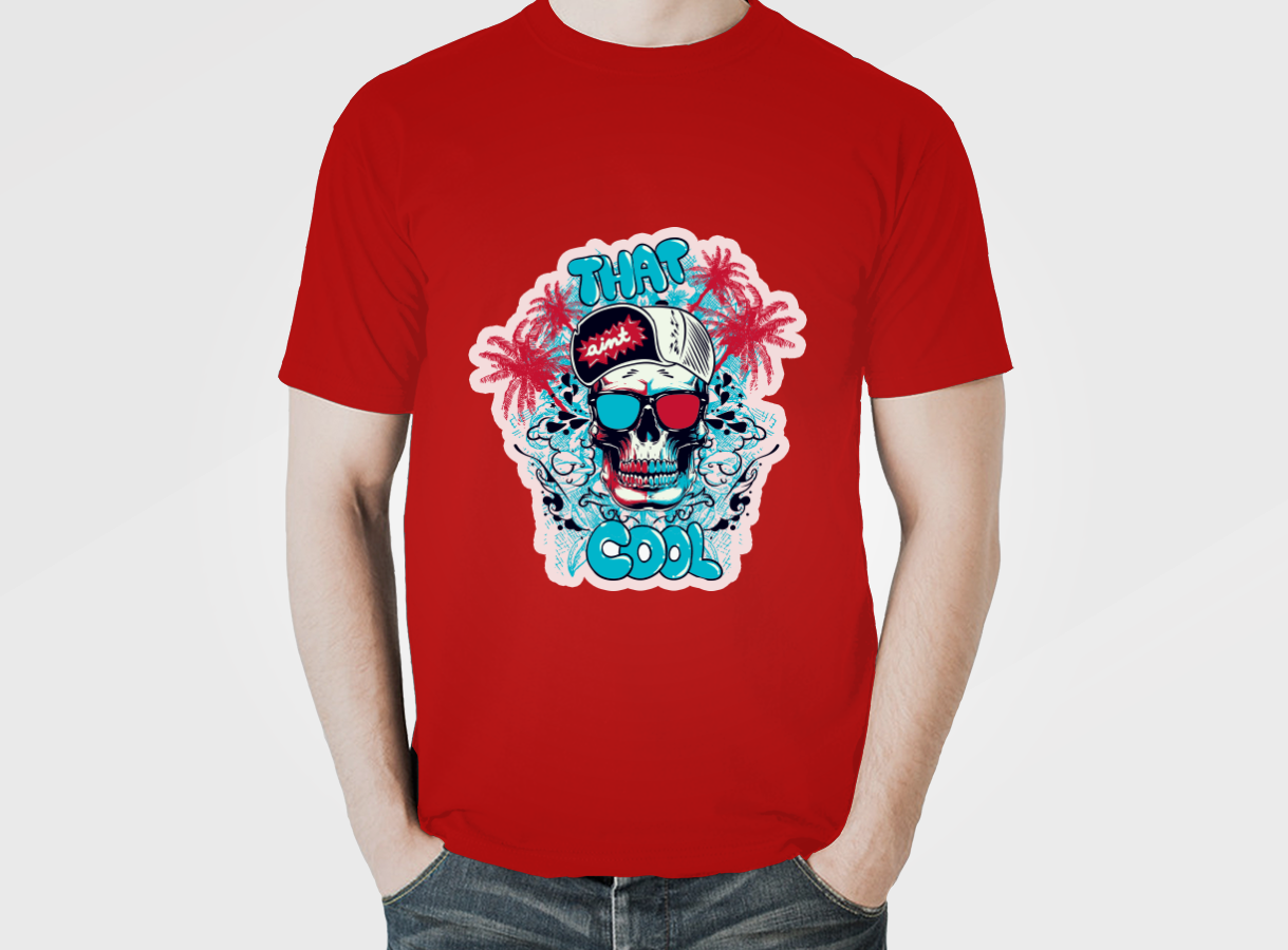 Stand out in this ‘That Cool’ T-shirt featuring a bold skull and palm tree design. Perfect for making a statement with style and comfort.