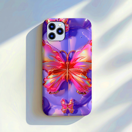 Enhance your phone’s aesthetic with this vibrant butterfly iPhone case. The vivid blend of purples and pinks creates a mesmerizing look that stands out. Designed to provide ultimate protection without compromising style, this case is perfect for the fashion-forward individual. Its durable material safeguards against scratches and everyday wear, ensuring your device remains pristine. Transform your phone into a stunning accessory that captures attention wherever you go.